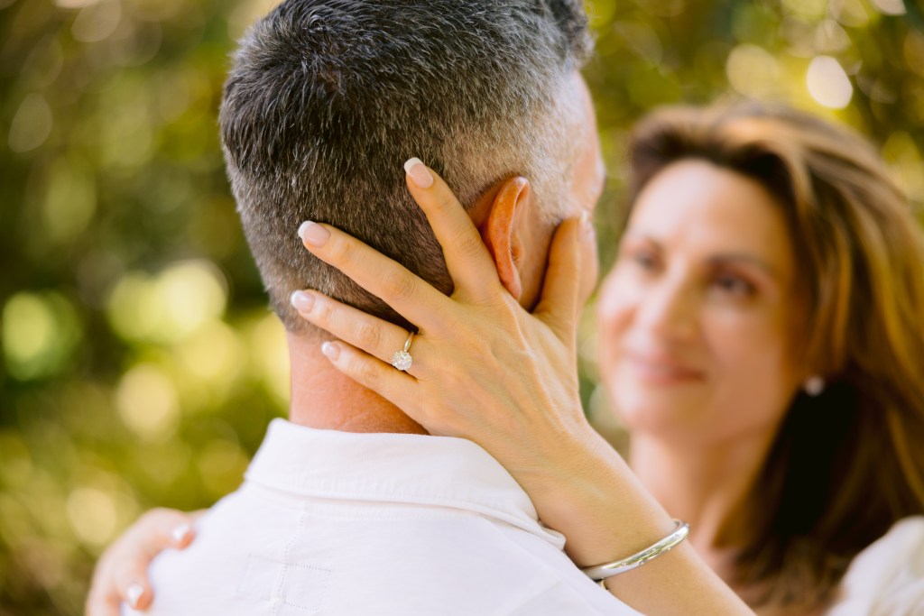 Brett took Daisy to the land he had bought for the life they plan to build together in East Tennessee. They walked down to the Obey (pronounced “Oh-Bee”) river that borders their property, dipped their feet in the water, and there—surrounded by the sound of the flowing stream and the shade of the trees—he asked her to be his wife. Just moments after he slipped the beautiful ring onto her finger, the sky opened and rain began to fall. They laughed, hugged, kissed, and stood there, soaked and blissfully happy, listening to the river and feeling the rain around them. Daisy never imagined the proposal would happen in a place so magical and meaningful to them both. It was perfect—unexpected, natural, and filled with love.
