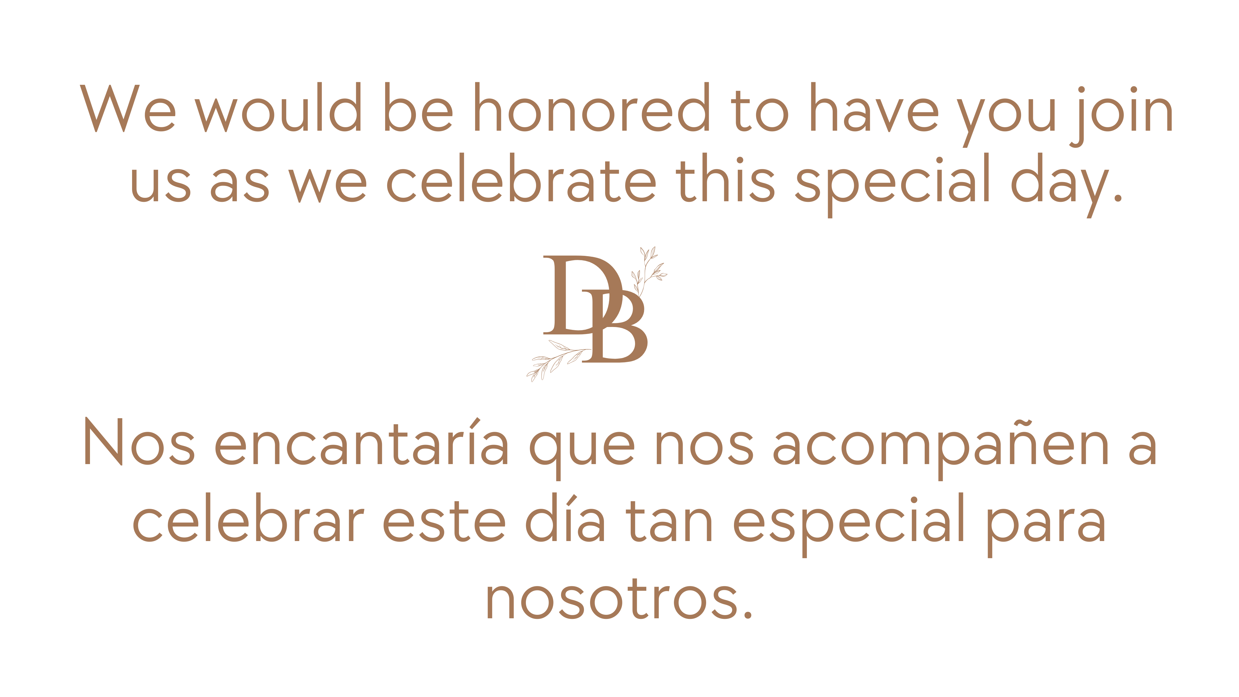 Nos gustaría que nos acompañe a celebrar nuestro dia especial. Por favor confirmar su presencia antes de Febrero 1 del 2026.